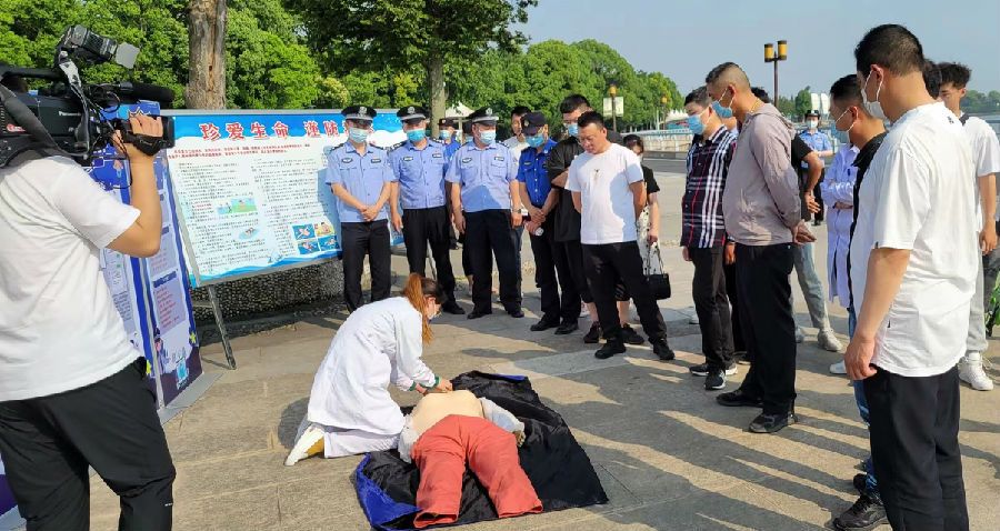 “如何避免出现溺水事故?”“失足落水后怎么自救?”“发现有人溺水应该怎样开展救援?南通五院的医护人员就如何开展心脏按压、人工呼吸等溺水施救方法现在为游客进行了讲解与示范,并请游客进行了体验。