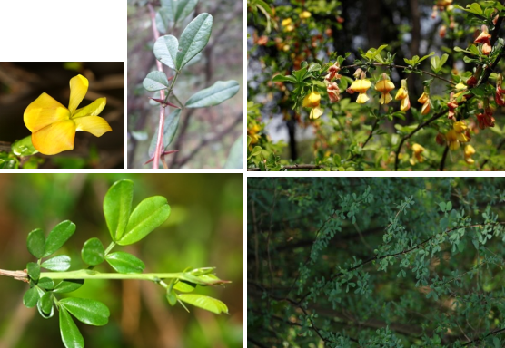 【识别要点】落叶灌木,高1-2m。树皮深褐色;小枝有棱,无毛。托叶三角形,硬化成针刺,小叶2对,羽状,厚革质或硬纸质,倒卵形或长圆状倒卵形,花单生,花冠黄色,常带红色,荚果圆筒状,花期4-5月,果期7月。