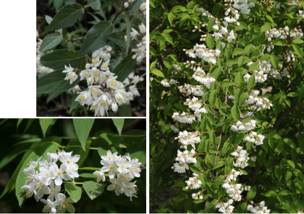 【识别要点】溲疏的变种,落叶大灌木。树皮薄片状剥落,小枝中空,红褐色。叶对生,有短柄,叶片卵形至卵状披针形。直立圆锥花序,花白色。蒴果近球形,顶端扁平;果柄具黄色柔毛,种子极小,肾形。花期5-6月,果熟期10月。