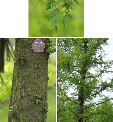 【识别要点】半常绿高大乔木,树干基部圆整,无板状根。树冠呈近椭圆形。成年树仅见雄球花,未见雌球果。落叶期在1月中旬至3月上旬,时间1个半月至2个月。