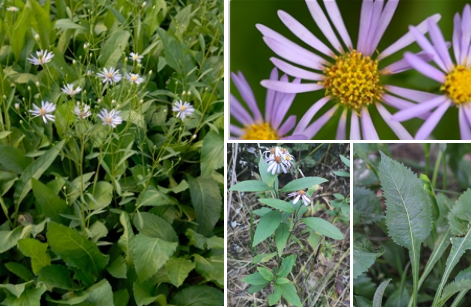 【识别要点】多年生草本。茎直立,粗壮,有棱及沟,被疏粗毛。基部叶在花期枯落,长圆状或椭圆状匙形,下半部渐狭成长柄。头状花序多数,径2.5-4.5cm,在茎和枝端排列成复伞房状;花序梗长,有线形苞叶。舌状花约20余个,舌片蓝紫色。瘦果倒卵状长圆形,紫褐色,花期7-9月,果期8-10月。