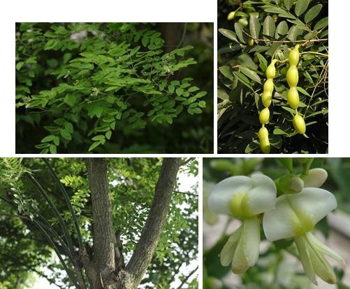 【识别要点】落叶乔木,高达25m,树冠广卵形。树皮深纵裂。顶芽缺,柄下芽,有毛。1-2年生枝绿色,皮孔明显。 奇数羽状复叶,小叶7-17,卵形、卵状椭圆形。花黄白色,圆锥花序。荚果肉质不裂,种子间缝缩成念珠状,宿存。种子肾形。花期6-8月,果熟期9-10月。