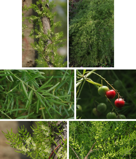 【识别要点】多年生攀援草本。茎长1-2m。具分枝,茎有棱或狭翅。叶状枝扁平,镰刀状,3枚一簇着生,叶退化为鳞片状,基部具硬刺。浆果红色。