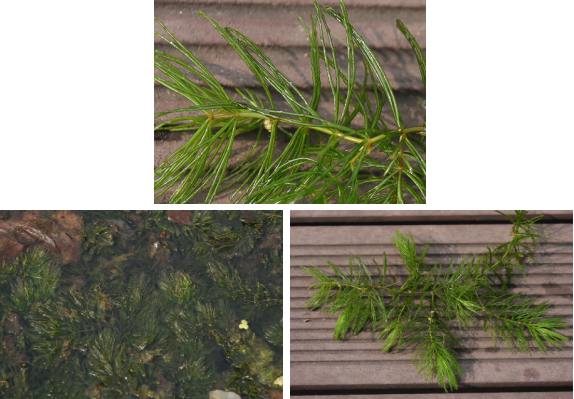 【识别要点】多年生沉水草本;茎长40-150cm,平滑,具分枝。叶4-12轮生, 1-2次二叉状分歧,裂片丝状,或丝状条形,先端带白色软骨质,边缘仅一侧有数细齿。花苞片9-12,条形,浅绿色,透明。坚果黑色,平滑。花期6-7月,果期8-10月。