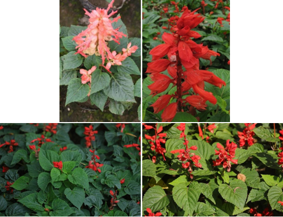 【识别要点】多年生草本,或亚灌木,常作一、二年生栽培。株高50-80cm。茎光滑,四棱形。叶卵形或三角状卵形,两面无毛,下面有腺点,具锯齿。总状花序顶生,被红色柔毛,小花2-6朵轮生,花冠鲜红;花萼钟状,与花瓣同色,宿存,花冠唇形,花期5-7月或7-10月。