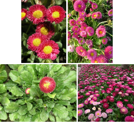 【识别要点】多年生草本,常作二年生栽培。株高10-15cm,全株具毛。叶基生,长匙形或倒卵形,基部渐狭,先端钝。头状花序单生,花草自叶丛抽出,舌状花,白色,深红色,淡红色等,管状花两性,均结实。瘦果扁平,有边脉;花期4-5月。
