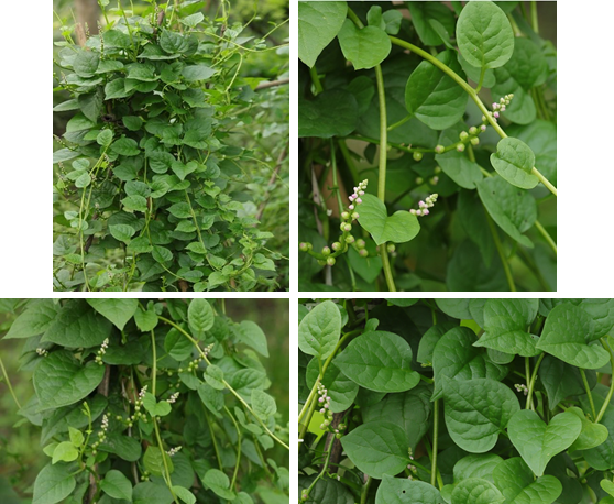 【识别要点】一年生缠绕草本。茎长可达数米,无毛,肉质,绿色或略带紫红色。叶片卵形或近圆形,顶端渐尖,基部微心形或圆形,下延成柄,全缘,背面叶脉微凸起。穗状花序腋生,白色,花药淡黄色。果实球形,红色至深红色或黑色,多汁液,外包宿存小苞片及花被。花期5-9月,果期7-10月。