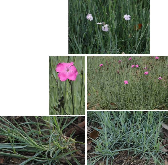 【识别要点】多年生草本,作一、二年生栽培。株高30-50cm。茎细弱铺散。叶较窄,条状。花单生或数朵顶生,花瓣先端浅裂呈牙齿状,苞片与萼筒近等长,萼筒上有枝,花有粉、粉红、红、淡紫等色,微香,花期5-9月。
