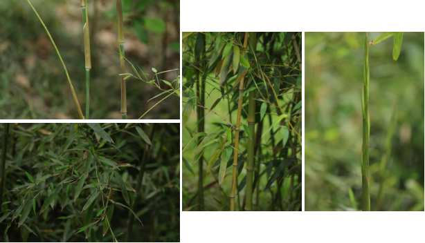 【识别要点】竿可高6m许,粗达3cm,幼竿具白粉并疏生短柔毛;箨鞘背面深绿带紫色,被白粉,无毛或疏生短毛,边缘生白色或淡褐色纤毛;箨耳小,但明显可见,淡紫色,卵形或长椭圆形,有时呈短镰形,果实未见。笋期5月,花期4-8月。