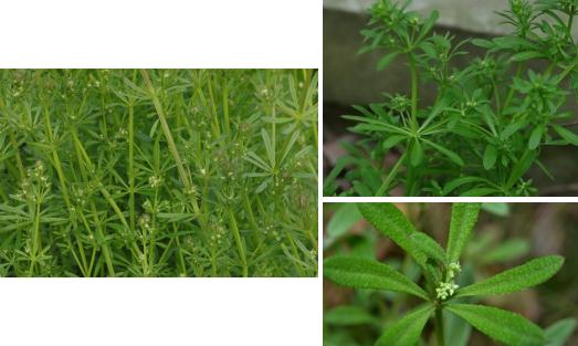 【识别要点】多年生草本。通常高30-90cm,棱上、叶缘、叶脉上均有倒生的小刺毛;叶纸质或近膜质,6-8片轮生,基部渐狭;聚伞花序腋生或顶生,花萼被钩毛,花冠黄绿色或白色,花期3-7月,果期4-11月。