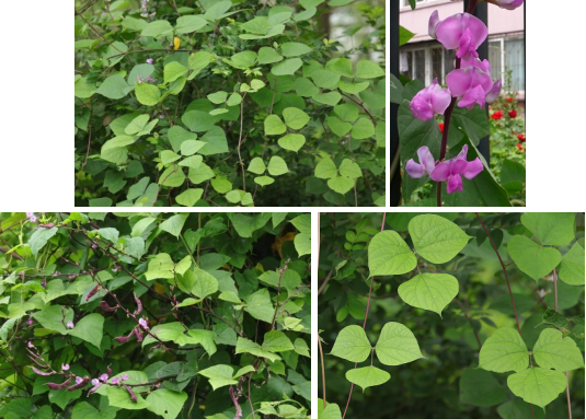 【识别要点】落叶多年生缠绕藤本,全株几无毛,茎长可达6m,淡紫色。羽状复叶;总状花序直立,花序轴粗壮,小苞片近圆形。荚果长圆状镰形,扁平,种子扁平,长椭圆形,在白花品种中为白色,在紫花品种中为紫黑色,种脐线形,4-12月开花。