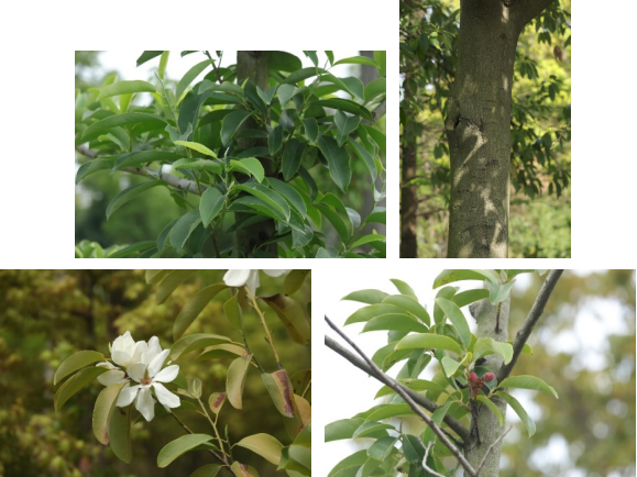 【识别要点】树高达2Om,全株无毛。顶芽窄蒴芦形,被白粉。叶宽椭圆形,长7-18cm, 叶表深绿色,叶背有白粉,中脉隆起,网脉明显。花大,白色,芳香。聚合果长10-12cm,种子斜卵形。花期2-3月,果9-10月成熟。
