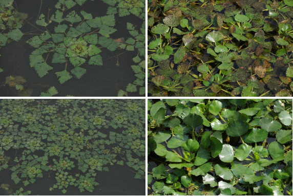【识别要点】叶互生,聚生于主茎或分枝茎的顶端,叶片菱圆形或三角状菱圆形,表面深亮绿色,背面灰褐色或绿色,沉水叶小,早落。花单生于叶腋两性;花盘鸡冠状。果三角状菱形,表面具淡灰色长毛,腰角位置无刺角,果喙不明显,内具1白种子。5-10月开花,7-11月结果。