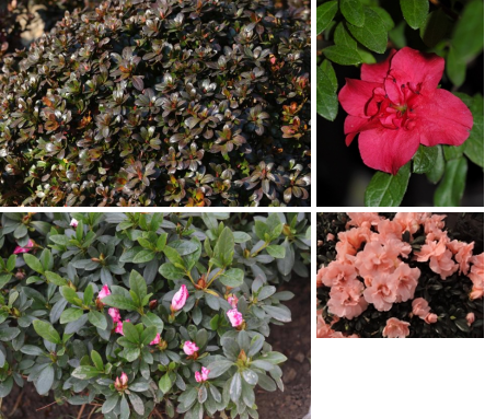 【识别要点】是皋月杜鹃、映山红及毛白杜鹃等反复杂交而育成。常绿灌木,根系木质纤细,植株低矮,枝杆紧密。叶互生,纸质,厚实,叶片集生于枝端,表面有淡黄色伏帖毛,先叶后花,顶生总状花序,簇生,花萼较大,裂片披针形,宽卵形,花色艳丽多样,蒴果长圆状卵球形,一年多次现蕾开花,四季有花。