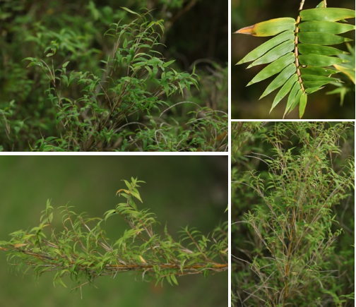 【识别要点】慈孝竹变种,秆高常1-2m,径不超过1cm。枝叶稠密纤细,下弯。叶细小,常20片排成羽状。节间鲜黄,秆上夹有显著的绿色纵条纹。其余同慈孝竹。