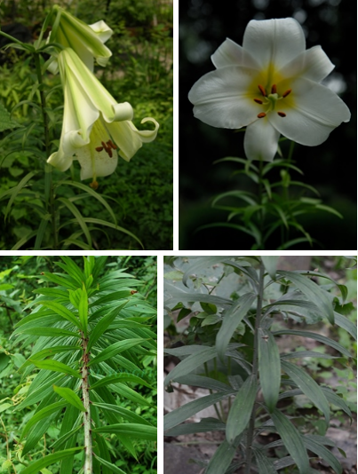 【识别要点】鳞茎球形,直径2-4.5cm;鳞片披针形,叶散生,具5-7脉,全缘,两面无毛。花单生或几朵排成近伞形;花喇叭形,有香气,乳白色,外面稍带紫色,无斑点,向外张开或先端外弯而不卷。蒴果矩圆形,有棱,具多数种子。花期5-6月,果期9-10月。
