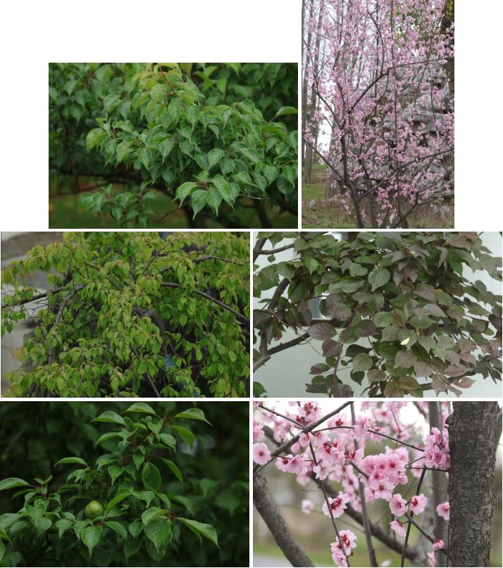 (3)樱李梅系。为19世纪末法国人用红叶李与宫粉型梅花远缘杂交而成,我国已引入栽培数个品种。