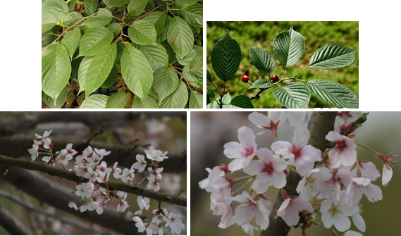 【识别要点】落叶乔木,树皮灰色。小枝淡紫褐色。叶片椭圆卵形或倒卵形,先端渐尖或骤尾尖,基部圆形,稀楔形,边有尖锐重锯齿,齿端渐尖,有小腺体。花序伞形总状,花瓣白色或粉红色,椭圆卵形,核果近球形,黑色,核表面略具棱纹。花期4月,果期5月。