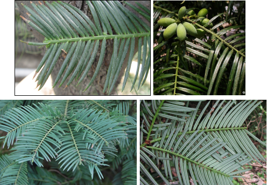 【识别要点】常绿乔木。小枝对生,冬芽顶生。叶螺旋状排成2列,线状披针形,微弯,下面气孔带白色。先端渐尖,基部模形,排列较松散。种子椭圆状卵形,熟时具红色假种皮。球花期4月,种熟期8-10月。