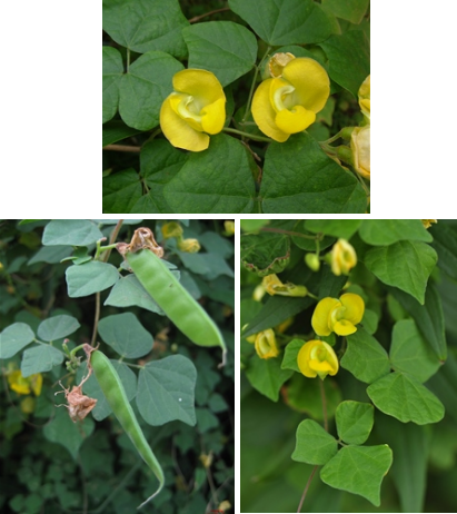 【识别要点】多年生缠绕草本。茎细弱,微具纵棱,略被短柔毛。叶具羽状3小叶;托叶细小,常早落;小叶薄纸质,顶生小叶较大,菱形或近三角形。总状花序或复总状花序腋生,花萼钟状,花冠黄色。荚果线状长圆形,种子6-7颗,黑色。花期7-9月。