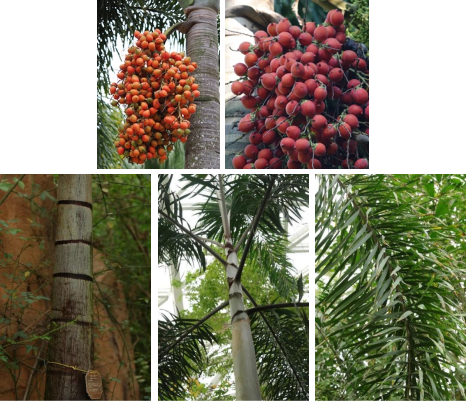 【识别要点】常绿乔木,植株高大通直,茎干单生,茎部光滑,有叶痕,略似酒瓶状,高可达12-15m,叶色亮绿,簇生茎顶,羽状全裂,长2-3m,小叶披针形,轮生于叶轴上,形似狐尾而得名,穗状花序,分枝较多,雌雄同株,果卵形,长6-8cm,熟时橘红色至橙红色。