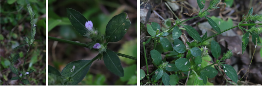 【识别要点】一年生细弱草本。全株被毛。茎下部斜卧,节部稍膨大,带紫红色。叶对生,穗状花序,偏生于一侧,花白色带淡紫色,蒴果。花期11月-翌年春季。