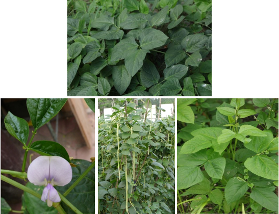 【识别要点】一年生缠绕草本,无毛。叶为三出复叶,顶生小叶菱状卵形,顶端急尖,托叶卵形,长约1cm,着生处下延成一短距。总状花序腋生;萼钟状,无毛;花冠淡紫色,花柱上部里面有淡黄色须毛。荚果线形,下垂,长可达40cm,一般只结两荚,荚果细长,因品种而异。花果期6-9月。茎有矮性、半蔓性和蔓性三种。