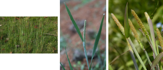【识别要点】一年生草本植物。秆少数丛生,细瘦,光滑,节处常膝曲,叶鞘光滑,短于节间;叶舌膜质,叶片扁平,圆锥花序圆柱状,灰绿色,小穗椭圆形或卵状长圆形,颖膜质,基部互相连合,脊上有细纤毛,侧脉下部有短毛;外稃膜质,先端钝,等大或稍长于颖,下部边缘互相连合,隐藏或稍外露;花药橙黄色,花果期4-8月。
