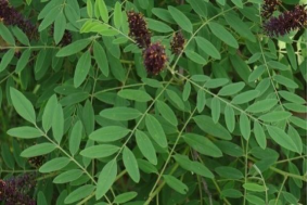 【识别要点】落叶灌木,高1-4m。枝褐色、被柔毛,后变无毛,叶互生,基部有线形托叶,穗状花序密被短柔毛,花有短梗;花萼被疏毛或几无毛;旗瓣心形,紫色。荚果下垂,微弯曲,顶端具小尖,棕褐色,表面有凸起的疣状腺点。花、果期5-10月。