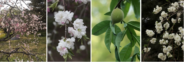 【识别要点】桃的变型。直立、蔓延或攀援灌木,小枝拱形下垂,树冠如同伞盖。花重瓣,有白、红、粉红、洒金等半重瓣、重瓣不同品种。