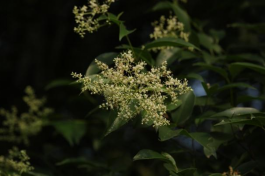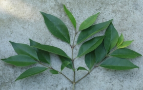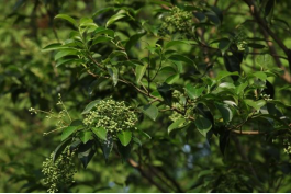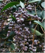 【识别要点】常绿乔木,高达15m。树皮光滑。枝、叶无毛。叶宽卵形至卵状披针形,革质,上面深绿色,有光泽,背面淡绿色。花芳香,几无梗,花冠裂片与花冠筒近等长;花序长10-20cm。果椭圆形,长约1cm,紫黑色,被白粉。花期6-7月,果期11-12月。