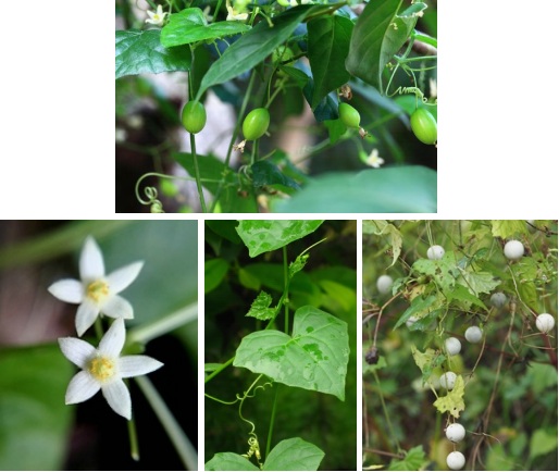 【识别要点】多年生草质藤本,长1-2m,有不分枝卷须。攀援或平卧草本;叶片膜质,三角状卵形、卵状心形或戟形、不分裂或3-5浅裂。雌雄同株。果实长圆形或狭卵形,成熟后橘红色或白色。花期4-7月,果期7-10月。