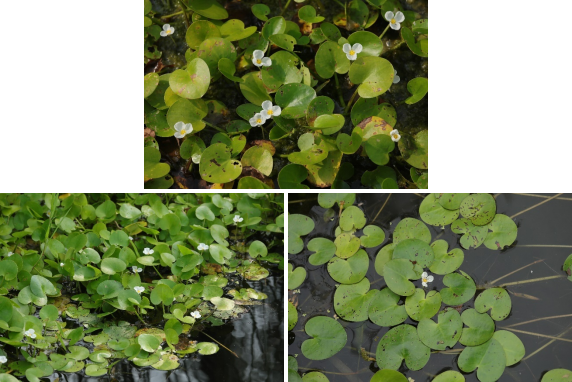 【识别要点】浮水草本植物。叶簇生,多漂浮,有时伸出水面;叶片心形或圆形,全缘。花瓣白色,基部黄色。果实浆果状,椭圆形。8-10月开花结果。