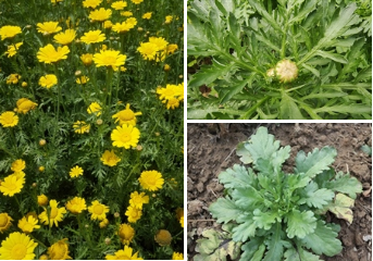 【观赏与应用】茼蒿有蒿之清气、菊之甘香。据中国古药书载:茼蒿性味甘、辛、平,无毒,有“安心气,养脾胃,消痰饮,利肠胃”之功效。中国各地花园观赏栽培。