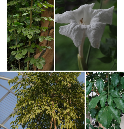 【识别要点】中等落叶乔木。树皮浅灰色,深纵裂。2回至3回羽状复叶,叶轴长约30cm,无毛。中叶对生,呈卵形或卵状披针形,先端尾尖,全缘。花夜开性。花序直立,顶生。萼齿卵状披针形。花冠钟状漏斗形,白色或淡黄色,裂片圆形,具皱纹。蒴果革质,呈圆柱状长条形似菜豆,稍弯曲、多沟纹。
