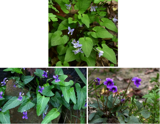 【识别要点】多年生草本。主根粗短,白色。叶丛生,长卵形至三角状卵形,长2-6cm,宽1.5-4cm,先端钝,基部心形,边缘具钝锯齿,下面稍带紫色,两面及叶柄稍有毛或无毛。花淡紫色,蒴果椭圆形。