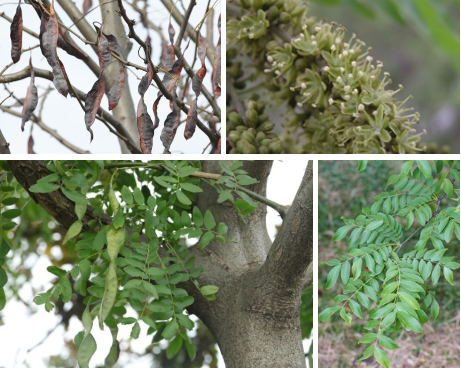 【识别要点】落叶乔木,小枝微有棱,羽状复叶,叶片先端圆钝,有时微凹,小叶柄极短。花黄绿色,穗状花序。荚果带形,扁平,长20-35cm,不规则旋扭或弯曲作镰刀状,。种子多数,椭圆形,4-6月开花;6-11月结果。
