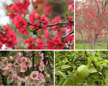 【识别要点】落叶灌木至小乔木,高2-6m;枝条直立,具短枝刺;小枝圆柱形,微屈曲,无毛,紫褐色,有疏生浅褐色皮孔。叶片椭圆形。花先叶开放,2-3朵簇生于二年生枝上;花直径2-4cm;萼筒钟状,花瓣倒卵形或近圆形。花期3-5月,果期9-10月。