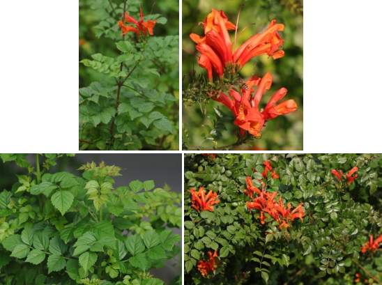 【识别要点】常绿披散灌木,高1-2m。枝细长,绿褐色,叶对生,奇数羽状复叶,小叶7-9片。具总花梗的总状花序顶生,花冠橙红色至鲜红色,有深红色的纵纹,稍呈漏斗状,蒴果长2.5-5cm。花期春季,果期夏季。