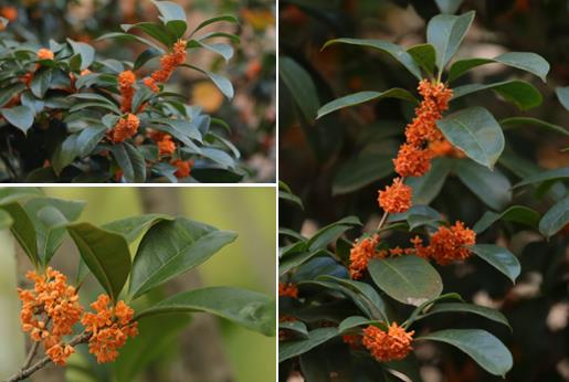 桂花常见变种,花橙黄或橙红色,香味浓。植物园、啬园等地有种植。