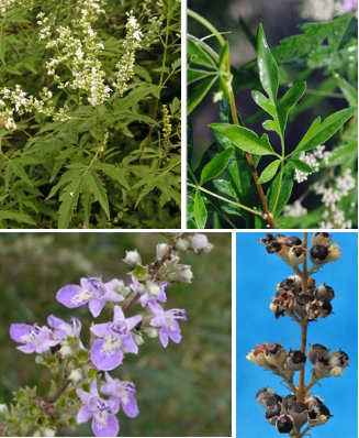 【识别要点】是黄荆的变种,落叶灌木或小乔木,高可达2-8m,地径7-8cm,树皮灰褐色,幼枝方形有四棱;掌状复叶对生或轮生,小叶5或3片,叶缘呈大锯齿状或羽状深裂,上面深绿色具细毛,下面灰白色,密被柔毛。花序顶生或腋生,先由聚伞花序集成圆锥花序,核果球形,果径2-5mm,黑褐色,外被宿萼。花期6-8月,果期9-10月。
