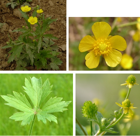 【识别要点】多年生草本。须根多数簇生。茎直立,高可达70cm,叶片圆心形或五角形,基部心形或截形,中裂片倒卵状楔形。两面贴生柔毛,叶柄生开展柔毛。聚伞花序有多数花,疏散;花贴生柔毛;萼片椭圆形,生白柔毛;花瓣倒卵状圆形,花托短小,无毛。聚合果近球形,瘦果扁平,4月至9月花果期。